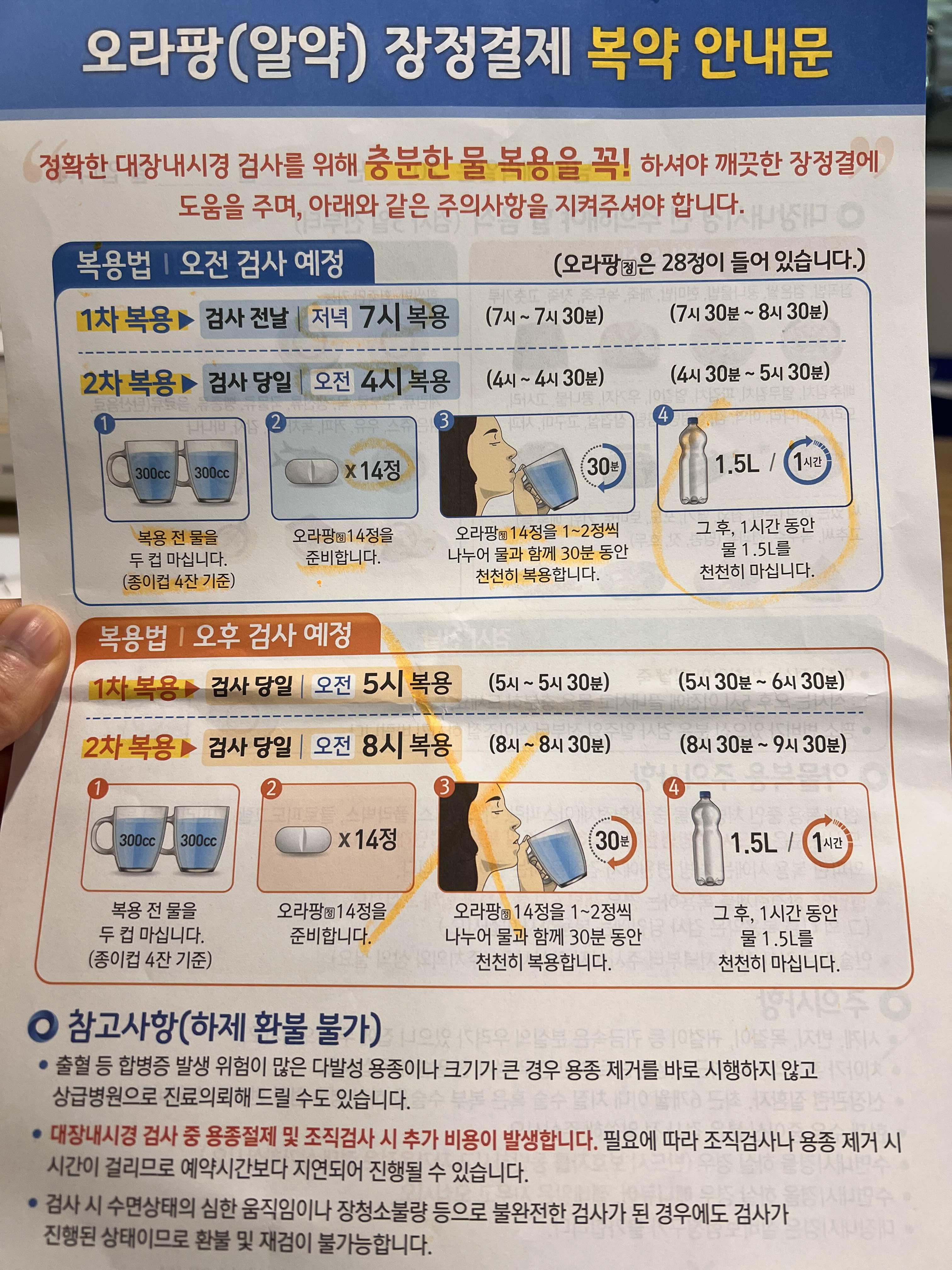 저희 부부는 대장 내시경 알약을 선택했고, 물약보다는 비용이 더 비쌌지만