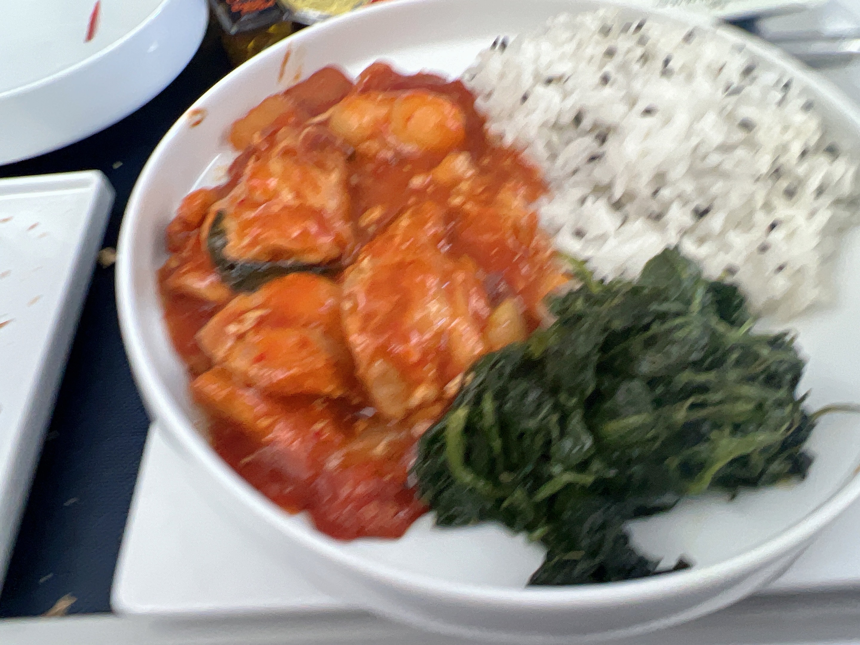 비즈니스석에서 제공하는 식사 역시 훌륭했습니다. 정말 다양하고 맛있는 음식들이 제공되었고, 와인과 샴페인이 다양하게 선택할 수 있어서 특별한 음식과 음료를 즐길 수 있었습니다. 첫 번째 식사에서는 한식을 선택할 수 있어서 좋았습니다. 원하는 경우에 위에 사진처럼 컵라면도 서비스받을 수 있습니다.