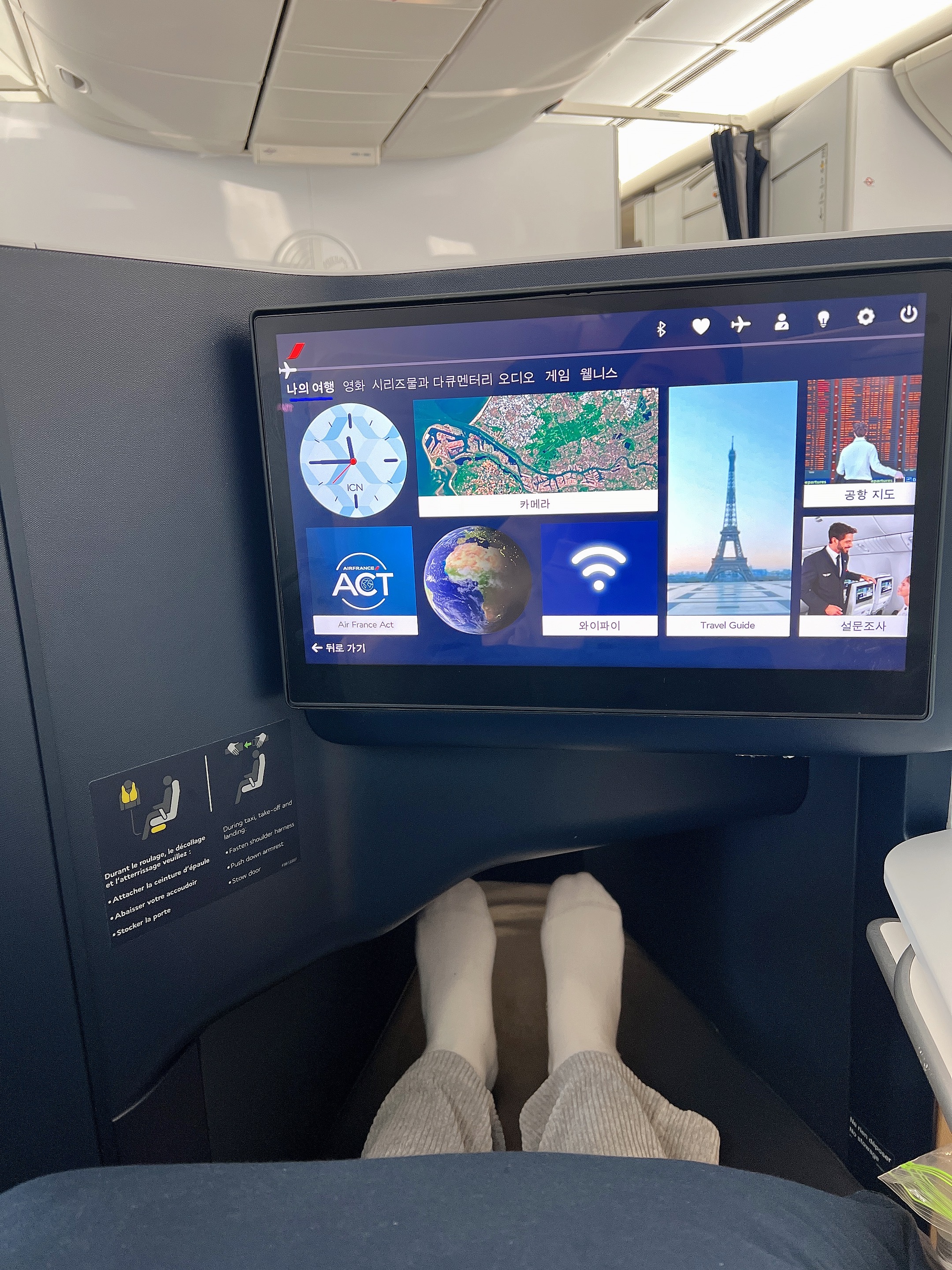 비즈니스석에 탑승해서 자리에 앉았을 때, 첫인상은 너무나도 훌륭했는데, 대한항공 프레스티지(비즈니스) 석은 넓지만, 개인 공간 확보는 되어있지 않았는데 에어프랑스 비즈니스석은 넓고 편안한 좌석에다가 개인 공간이 확보되어 있어서 동행자나 타인과의 접촉 없이 편안한 여행을 즐길 수 있었습니다.